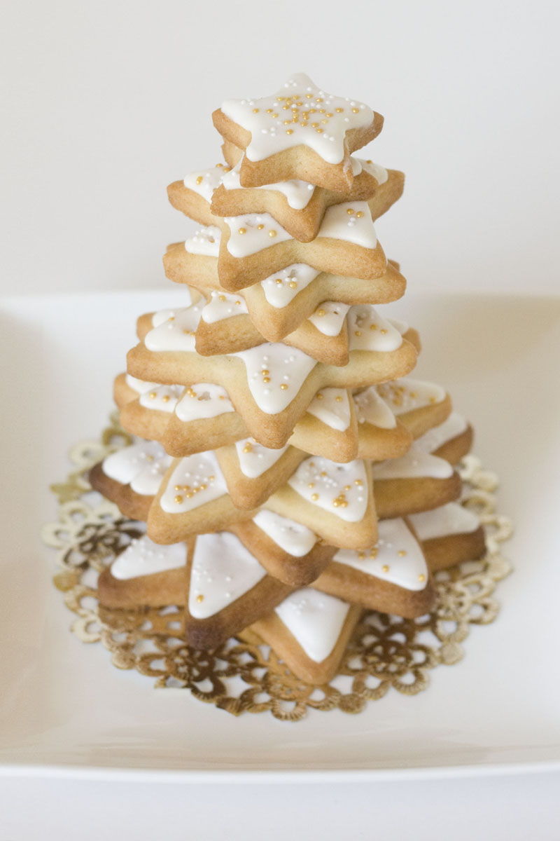 Aprovechando que estamos en estos días de fiesta en que parece que ya es Navidad, hemos aprovechado para empezar a hornear nuestras galletas navideñas. Y nada mejor para dar un toque navideño al blog que este árbol de galletas de estrellas navideñas.